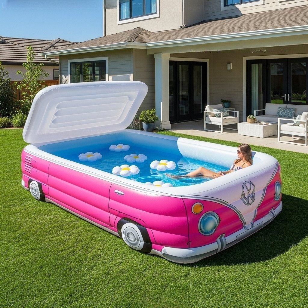 Activities like water games, pretend play, or even a friendly water balloon fight are more enjoyable with friends, and the VW bus pool provides the perfect setting for these activities. Its unique design also makes it a magnet for attention, ensuring that it’s the center of activity during any summer gathering.