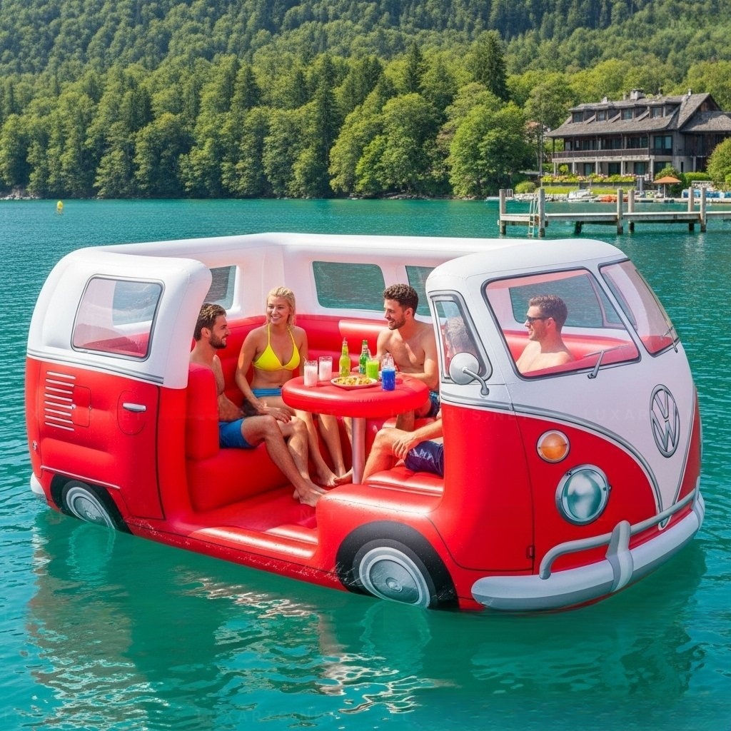 There’s something inherently joyful about floating around in a giant inflatable bus shaped like a piece of history. It adds a sense of whimsy and playfulness to any outing, helping guests unwind and enjoy the moment. Whether you’re soaking up the sun or splashing around with friends, the Inflatable VW Bus lake floats turn ordinary water time into unforgettable memories.