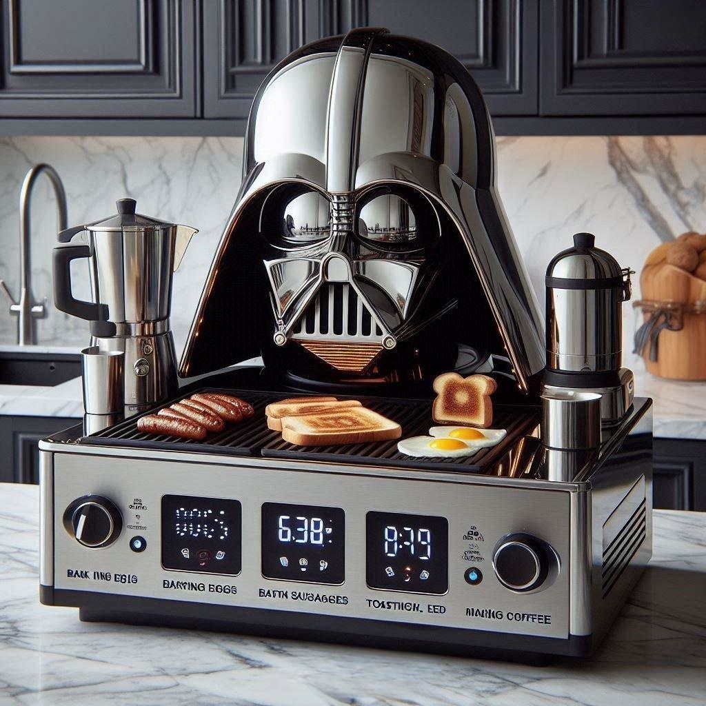 The Darth Vader breakfast station is perfect for fans of the Sith Lord, combining dark elegance with practical functionality. The smoothie maker is an excellent addition for those who like to start their day with a nutritious beverage, adding versatility to the station.