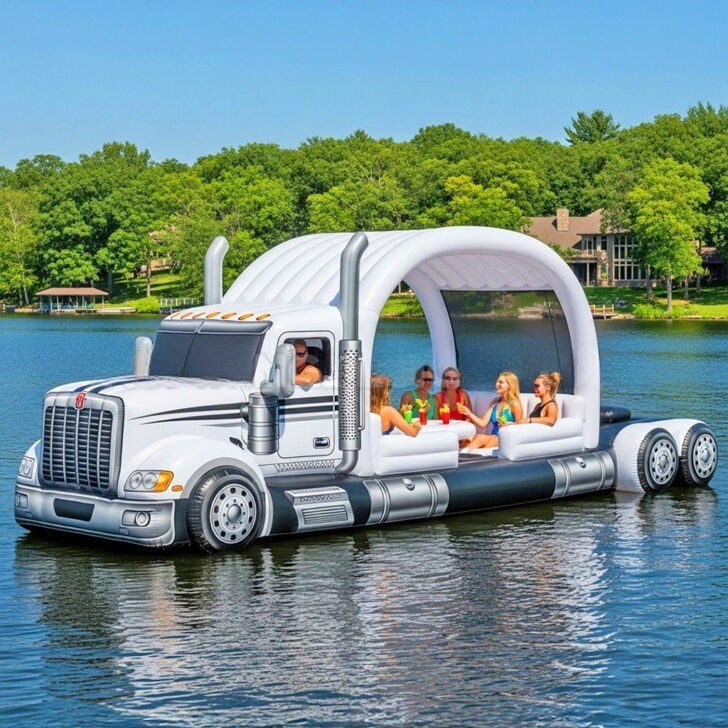 Each of these inflatable semi-trucks is designed with an eye for trucker-level detail. We’re talking fully sculpted cabs, big chrome-ish bumpers (air-filled, of course), rearview mirrors, and even smokestacks. If you’ve ever dreamed of driving a big rig but only as far as the middle of the lake, you’re in luck.